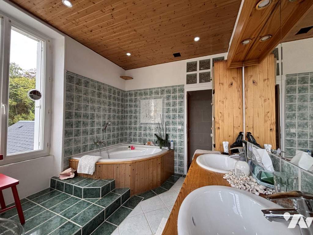 À l’étage, quatre belles chambres desservies par un palier, une salle de bains familiale avec baignoire et douche, ainsi qu’un second WC indépendant.