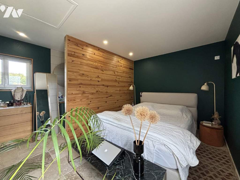 Au rez-de-chaussée, vous serez séduits par une vaste pièce de vie lumineuse de plus de 40 m², ouverte sur une cuisine entièrement aménagée et équipée. Une suite parentale de plain-pied avec salle d’eau privative incluant douche et hammam et des toilettes séparées complètent ce niveau.